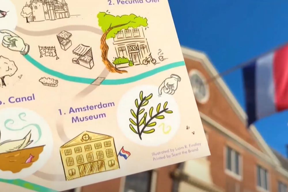荷蘭阿姆斯特丹博物館推出了Odeuropa’s City Sniffers(城市嗅探者:阿姆斯特丹生態歷史的氣味之旅)的活動,並創建一張「氣味嗅探地圖」,讓參與活動者可以用自助式的方式,展開一場自助式的氣味之旅,這張氣味嗅探地圖,有6個站點,都代表著阿姆斯特丹的歷史氣味,例如:運河的惡臭味、迷迭香的味道、與歷史悠久香水有關的麝貓香氣味、菩提樹氣味,以及最特別的香薰氣味(帶有芳香草本的球形首飾,在 16/17 世紀被用作抵禦瘟疫的芳香擴散器),讓參與者深入地了解阿姆斯特丹的殖民歷史、交通以及工業的故事,也強調人類對環境的影響,今天是我們過去行為的積累,因此人人必須都要有環保意識。