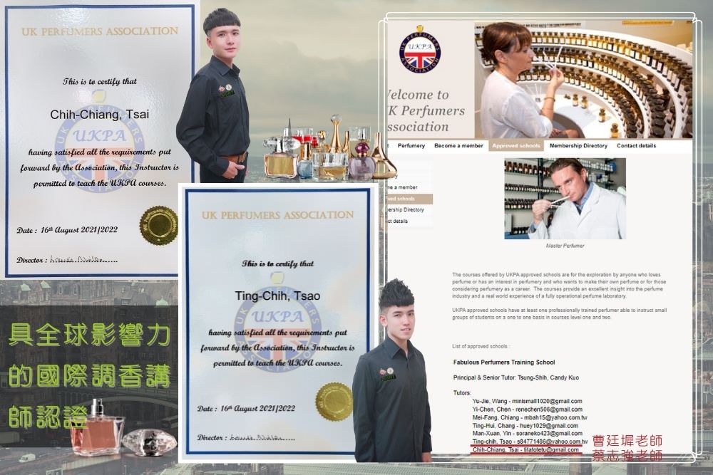 如果說到要從事調香教學,經本學院專業調香指導培訓,並且英國調香協會 UK Perfumers Association (UKPA) 講師資格證書, 講師的名字也會在國外的網站刊登出來,除了讓全世界看到你的專業之外,更增加了講師資格的公信力。(UKPA講師履歷驗證溯源網址)